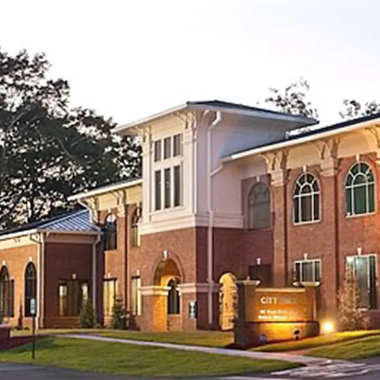 Oxford’s City Hall opened in 2010. This redevelopment implemented several new stormwater mitigation features. Porous pavement in the parking areas reduces runoff. Any remaining stormwater is captured by a rain garden, which slowly filters the water through layers of stone and soil. An underground vault collects the remaining stormwater and stores it for future irrigation.